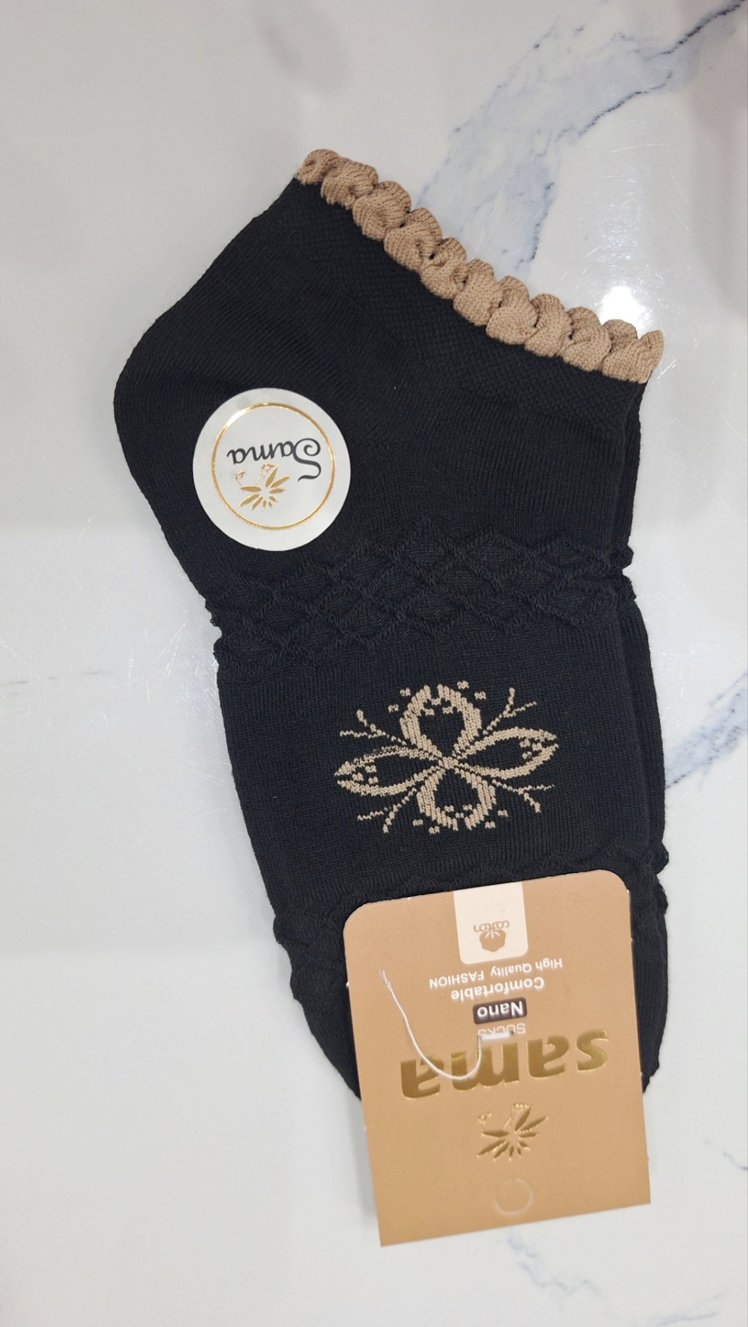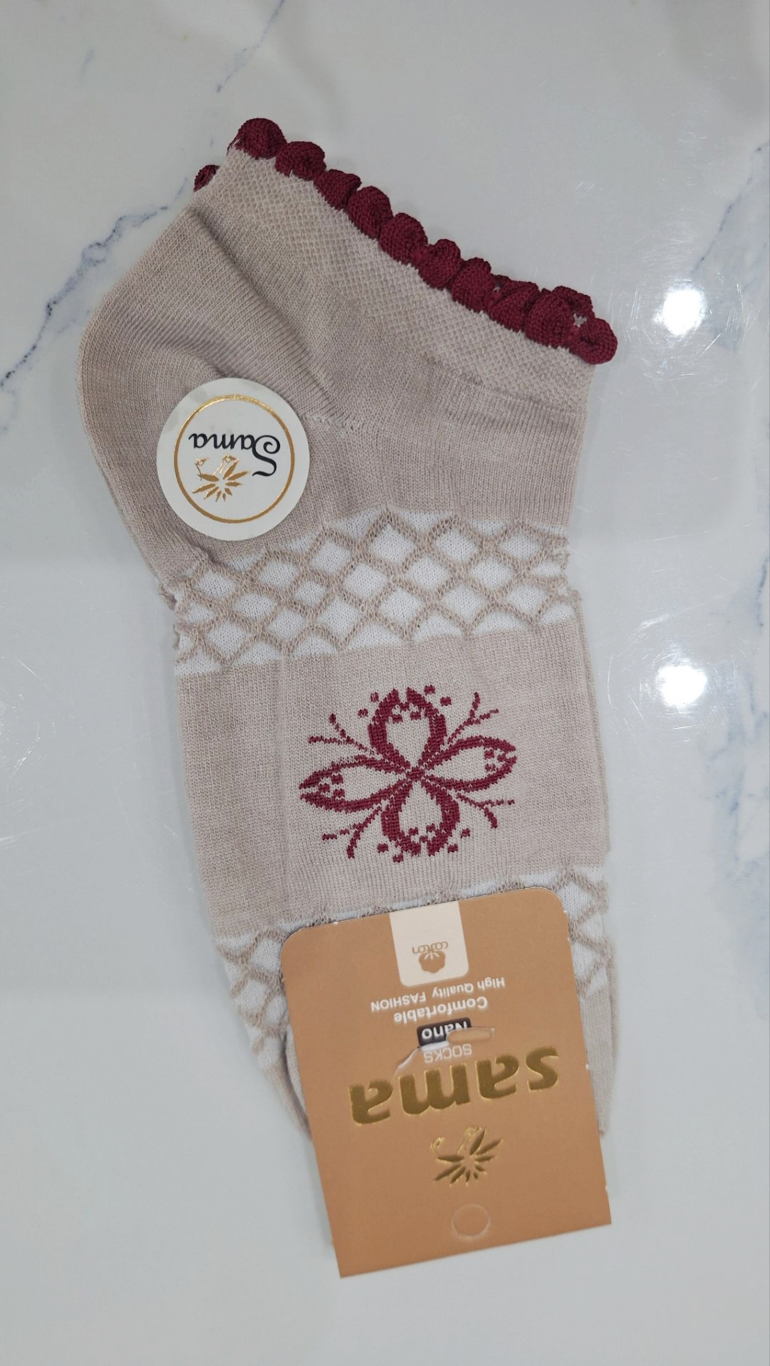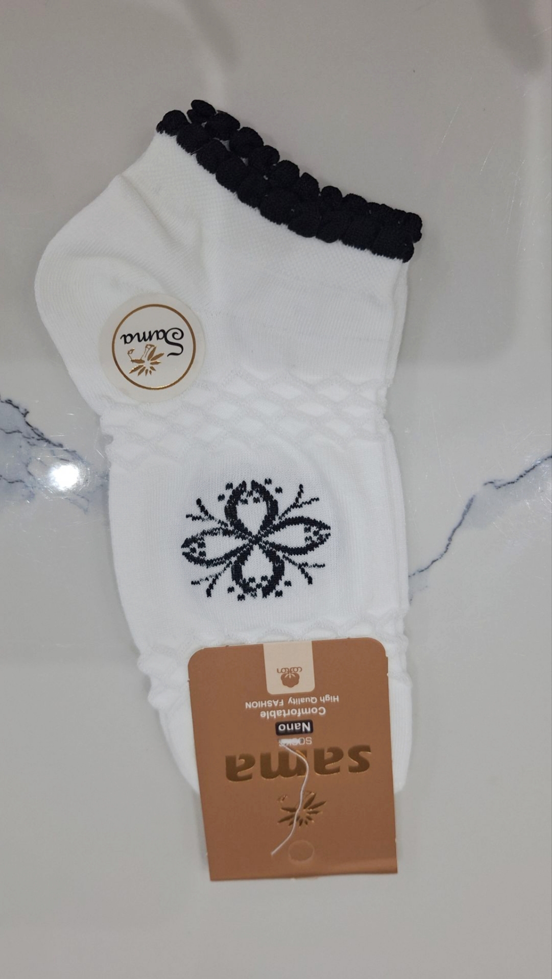 جوراب نخ پنبه مچی لب کنگره ای